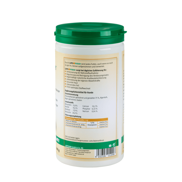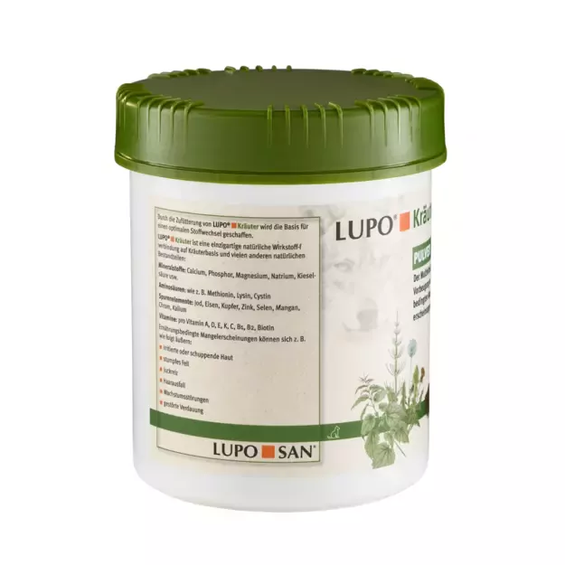 Jūsų augintinio šėrimas papildu LUPO Krauter – optimalaus metabolizmo pagrindas. LUPO Krauter yra unikalus natūralių ir augalinių aktyviųjų sudedamųjų dalių derinys, tarp kurių yra mikrodumbliai ir kiti natūralūs komponentai.
