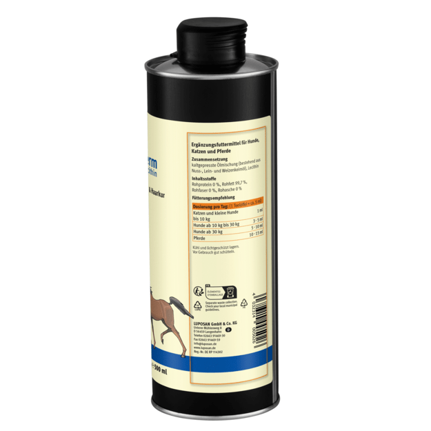 Papildas LUPO Derm, skirtas odai ir kailiui, ištisus metus rūpinasi kailiu ir oda bei padeda palaikyti jų tinkamą būklę. Sudėtyje turi visas neprisotintas riebalų rūgštis - Omega-3, Omega-6 ir lecitiną.